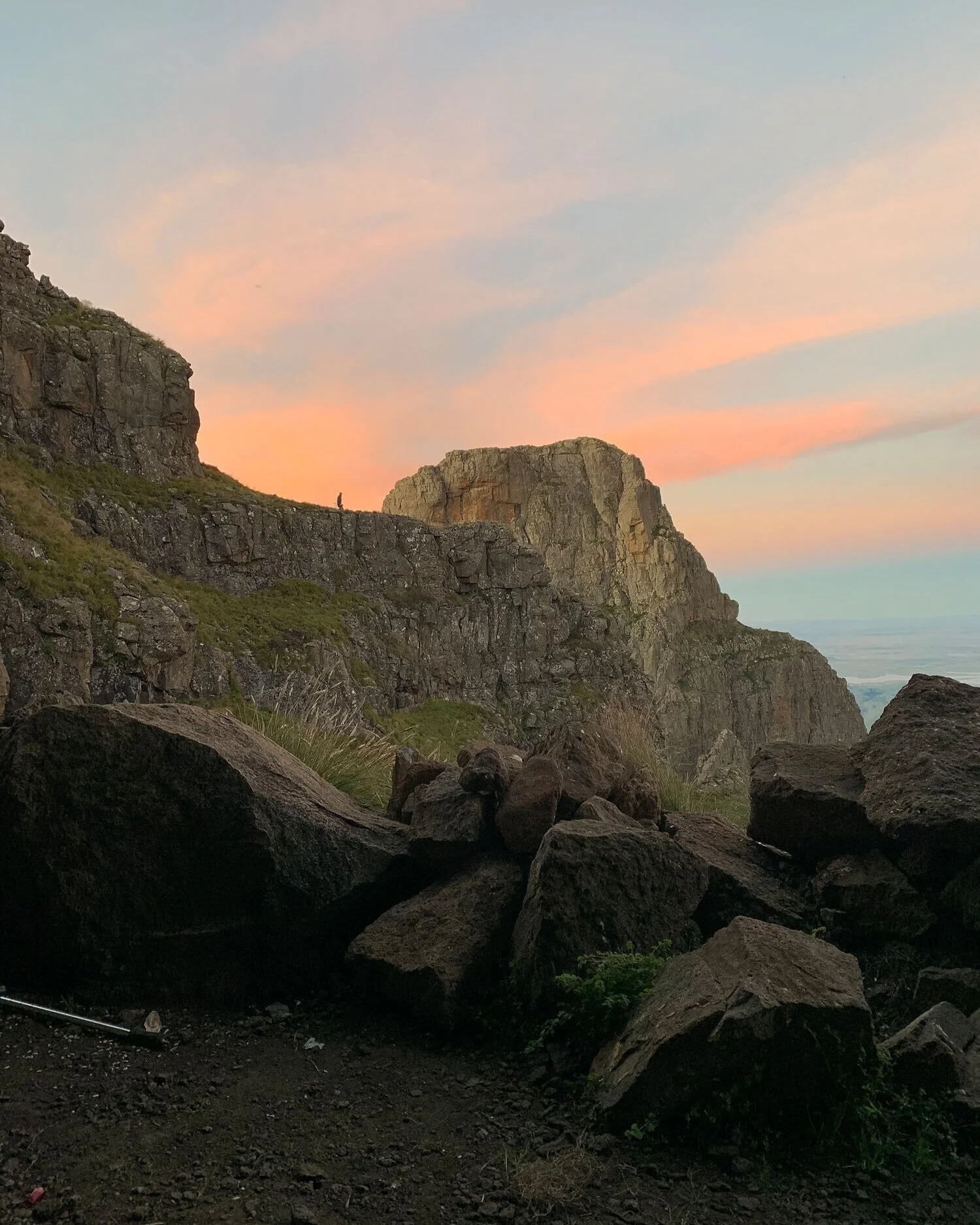 With an early start and a fast pace, the hike from Mnweni Cultural Centre to Mponjwane Cave via Rockeries Pass can be done in one day. But it will be a very long day. If you prefer a more leisurely hike, the base of Rockeries Pass provides a great campsite. Camping here would be my recommendation. You will find the campsite directly on the path, at the point where the Nquaza Pass and Rockeries Pass converge. Between the grassy tufts and small robust trees, there’s space for 4-5 tents. You may notice small fire pits dotted around the campsite. These are likely made by local shepherds. Please do not make any fires here.